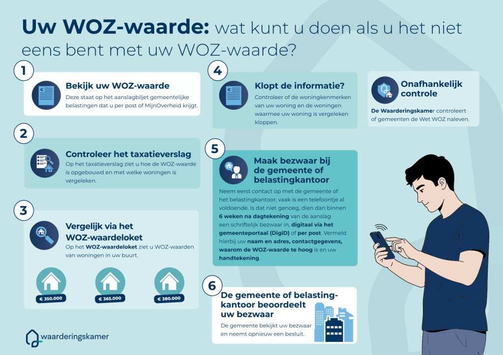 Tot slot is er onafhankelijk toezicht door de Waarderingskamer. Deze organisatie controleert of gemeenten de WOZ-waarden zorgvuldig en volgens de wettelijke regels vaststellen.